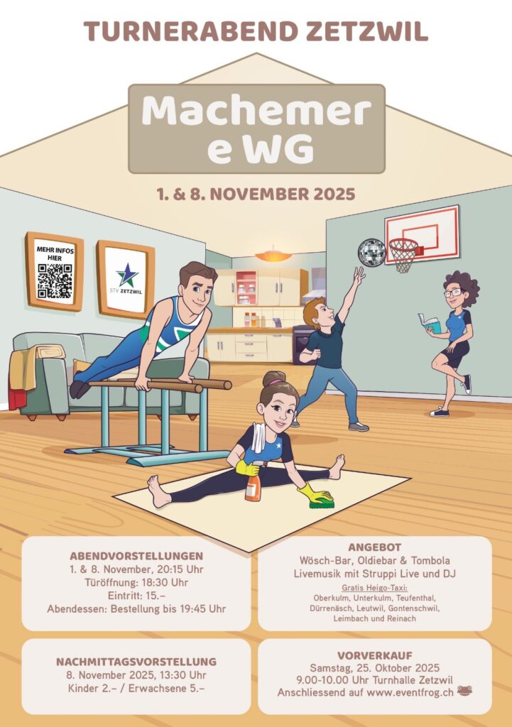 🏠👯♂️ „Machemer e WG“ – der Turnerabend Zetzwil steht vor der Tür! 🍝🧹🧻